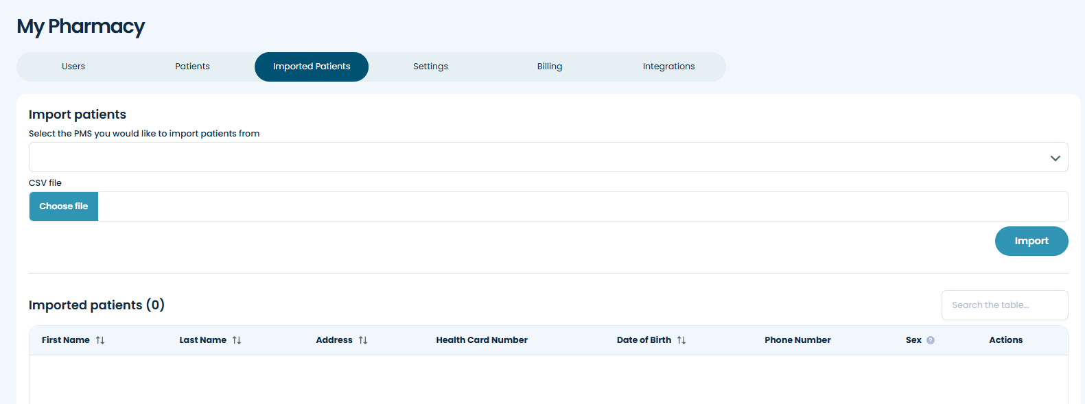 - Under Import patients, select the PMS you would like to import patients from.