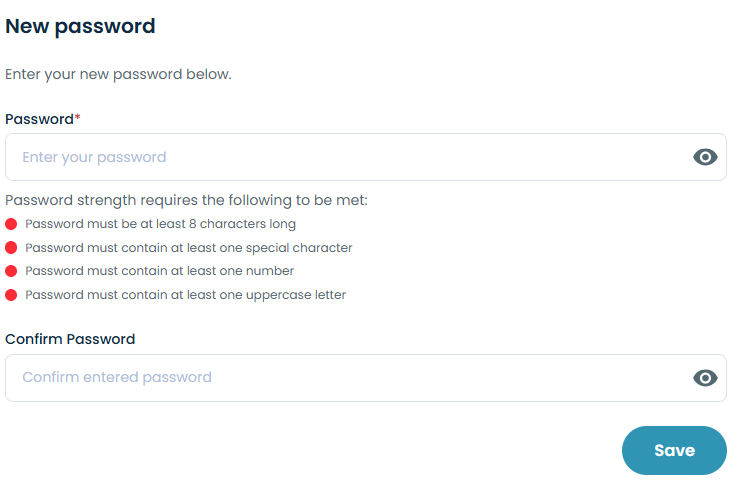 - In the panel that appears, enter your new password in the Password and Confirm Password fields.