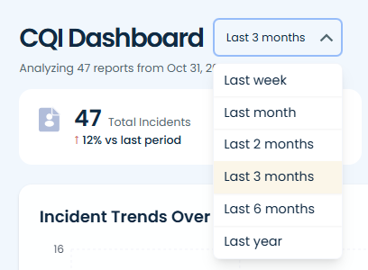 Using the toggle next to CQI Dashboard, you can change the date range.